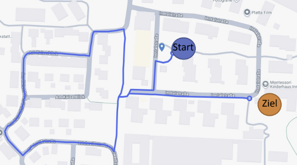 Das ist die geplante Route des Umzugs. Laut Google Maps sind das 850 m, die